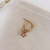 Aro de 12 mm de acero hipoalergénico enchapado en oro 18k con doble dije de estrella y piedra del mismo material. Se pueden colocar y sacar los dijes