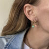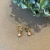 Argolla de 12 mm de diámetro de acero bañado en oro 18K con dije redondo de fimo con flores y terminación de bolita de acero bañada en oro