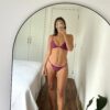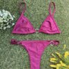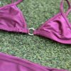 Bikini triángulo con argolla de zamak en el medio y colaless con argollas regulable. Las argollas no se calientan ni oxidan. Todos los conjuntos traen abertura para agregar tazas.
