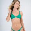 Conjunto triangulo fijo con bombacha colaless regulable. El bikini trae abertura para agregar tazas. Tela texturada.