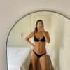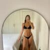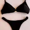 Bikini con corpiño tipo top con hebilla redonda en el centro y colaless entera con frunce en los costados. Tela texturada velvet. Incluye tazas soft incluidas.