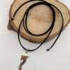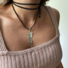 Collar con tira de gamuza de 120 cm de largo, para dar hasta tres vueltas en el cuello, con dije en forma de rayo realizado en alpaca