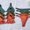 Bikini triángulo con breteles de elástico y colaless regulable. Todos los conjuntos vienen con abertura en el corpiño para agregar tazas.