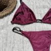 Bikini triángulo con breteles de elástico y colaless regulable. Lycra premium metalizada.