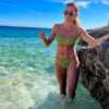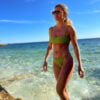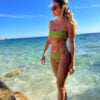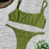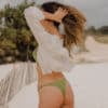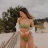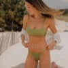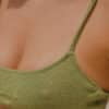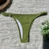 Bikini con corpiño tipo top con colaless regulable en tela lurex brillante. Todos los conjuntos vienen con abertura en el corpiño para agregar tazas.