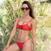 Bikini con corpiño tipo top con hebilla marrón de carey con colaless regulable. Todos los conjuntos vienen con abertura en el corpiño para agregar tazas.