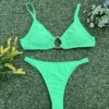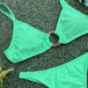 Bikini con argolla en el medio y bombacha colaless con frunce en los costados. Trae tazas soft incluidas.