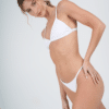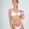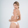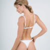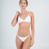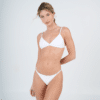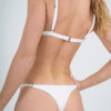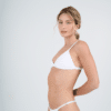 Conjunto triangulo fijo con bombacha colaless regulable. Tela texturada. El corpiño trae aberturas para agregarle tazas.