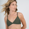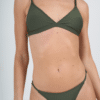 Conjunto triangulo fijo con bombacha colaless regulable. Lycra texturada. Trae abertura para agregar tazas.