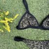 Bikini triangulo fijo con bombacha colaless regulable. Tela metalizada. Trae tazas soft incluidas.
