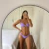 Bikini con corpiño tipo top con hebilla redonda en el centro y colaless entera. Trae tazas soft incluidas.