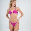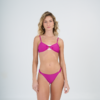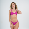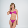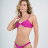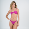 Bikini con hebilla cuadrada en el medio y bombacha colaless con frunce en los costados. Trae abertura para agregar tazas