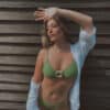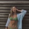 Bikini con corpiño tipo top con hebilla cuadrada en el centro y colaless entera con frunce en los costados. Trae tazas soft incluidas.
