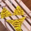 Bikini triangulo separado con bombacha colaless con tiras para atar. Trae tazas soft incluidas.