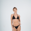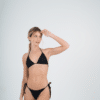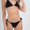 Conjunto triangulo separado y bombacha con tiras para atar en los costados. Tela texturada. El bikini tiene abertura para agregar tazas
