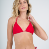 Conjunto triangulo separado con bombacha colaless con tiras para atar en los costados. Trae abertura para agregar tazas.