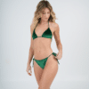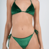 Conjunto triangulo separado con bombacha colaless con tiras para atar en los costados. Tela premium velvet. Trae abertura para agregar tazas.