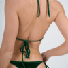 Conjunto triangulo separado con bombacha colaless con tiras para atar en los costados. El bikini tiene abertura para agregar tazas. Tela velvet.
