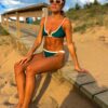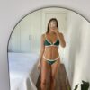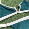 Conjunto con corpiño en V y colaless regulable. Todo los conjuntos traen abertura para agregar tazas.