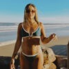 Conjunto con corpiño en V y colaless regulable. Todo los conjuntos traen abertura para agregar tazas.